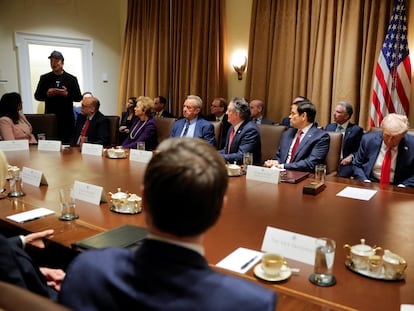 En un gesto sin precedentes, el empresario se suma a la reunión inaugural del nuevo Gobierno estadounidense entre las fricciones con algunos de sus miembros por el plan de recortes del DOGE