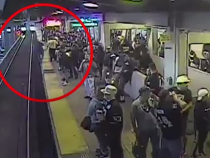 Una grabación de seguridad muestra el momento en que el usuario cayó a las vías