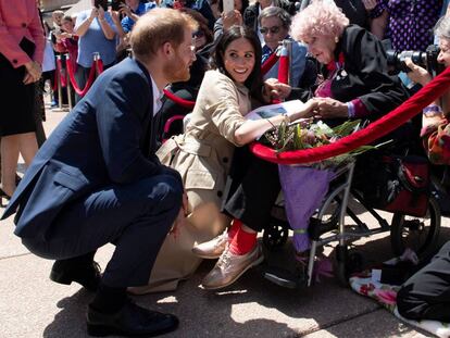 El nieto de Isabel II se reencuentra con la viuda de guerra Daphne Dunne en su viaje a Australia y le presenta Meghan Markle