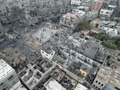 Israel admite el bombardeo a un campo de refugiados en Gaza que ha matado a decenas de personas | Las explosiones han provocado un inmenso cráter y grandes daños en los edificios cercanos, de los que varios residentes han sacado los cadáveres de al menos tres bebés | Soldados israelíes y milicianos de Hamás se enfrentan en diversos puntos de la Franja