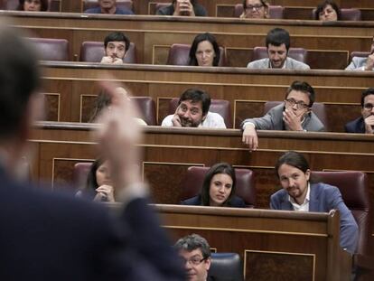 Podemos utiliza la ausencia del PSOE en la moción y la confrontación con Rajoy