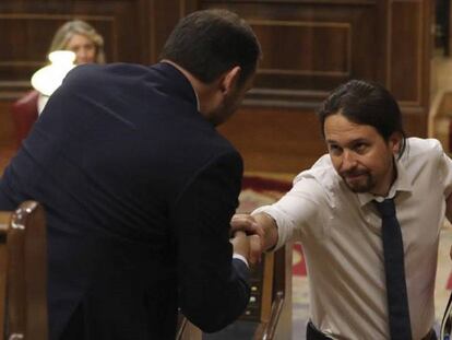 Iglesias les pasó la mano por el lomo al PSOE y al final se acercó sin miedo a dar la mano a Ábalos