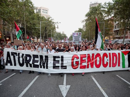 Una protesta, desde la plaza de Catalunya hasta la sede de la Unión Europea, pide sanciones a Israel