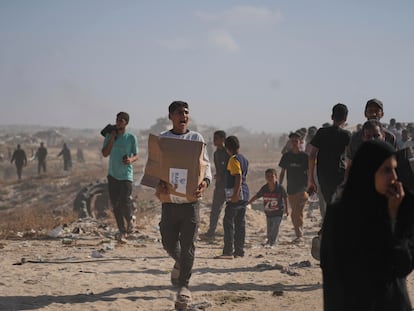 Miles de gazatíes irrumpen en los centros de distribución de ayuda creados por Israel y EE UU para conseguir alimentos | La organización opera al margen de la ONU | El ejército israelí afirma que ha realizado “disparos de advertencia”