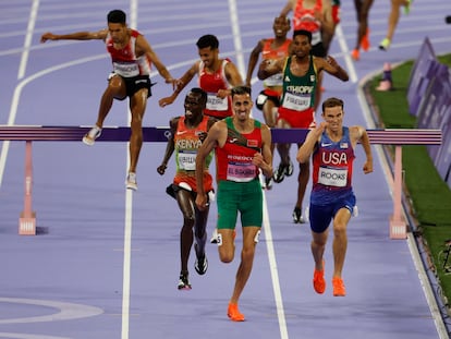 El italiano socorre al catarí, que se lesiona en la calificación de altura, mientras el norteamericano sorprende en los 3.000m obstáculos en los que repite victoria El Bakkali