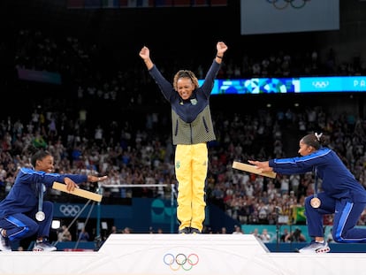 La gimnasta norteamericana apoya su reclamación al TAS por la medalla de bronce en París en unas imágenes de un documental de la plataforma