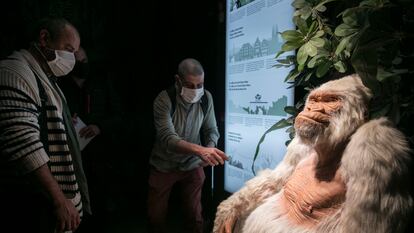 Dos cuidadores del Zoo de Barcelona visitan la figura del gorila blanco en el Museo de Cera de Barcelona