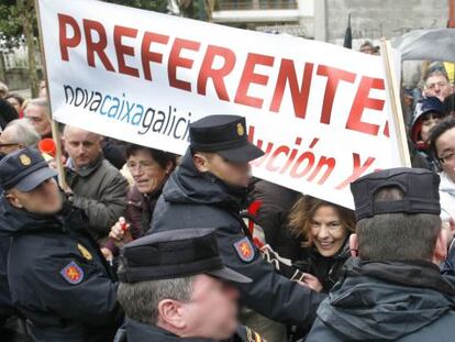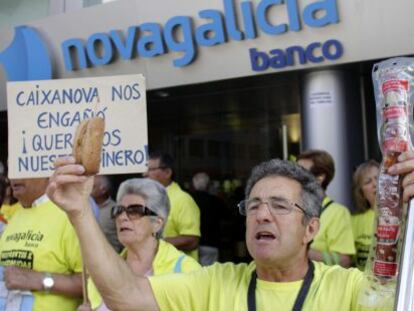Afectados por las preferentes protestan en Ferrol ante la oficina de NCG Banco y contra el arbitraje de la Xunta en Consumo