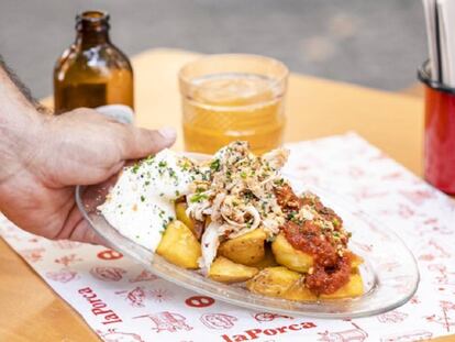 Nada puede salir mal en este plato típico del interior de Cataluña, donde el tubérculo se mezcla con butifarra negra y panceta sofrita con ajos