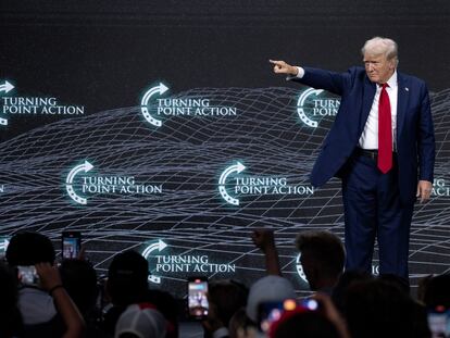 El republicano atribuye a la “ultraliberal” aspirante demócrata a la presidencia la crisis migratoria y la entrada “de 20 millones de extranjeros” en Estados Unidos
