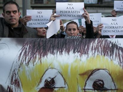 Medio centenar de personas se concentran en Sants para apoyar a las víctimas de la pederastia