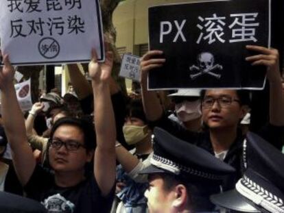 La manifestación de Kunming, en contra de los daños medioambientales del proyecto industrial, ha sido una de las más grandes del año