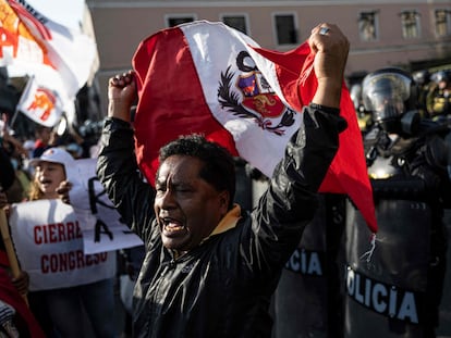 Miles de peruanos salen a las calles a protestar tras la decisión del presidente Pedro Castillo de decretar un Gobierno de excepción y toque de queda
