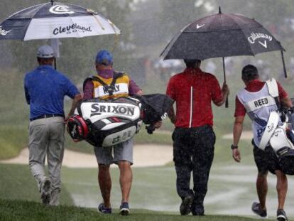 El último grande del año para los golfistas estuvo suspendido tres horas y es probable que no acabe hasta el lunes