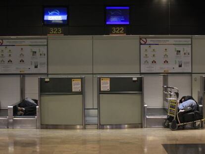 Los usuarios del aeropuerto madrileño protestan por la falta de información Las terminales están llenas de papeles tirados por los suelos Las cafeterías están cerradas y no hay donde tomarse un café