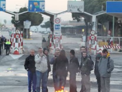 Un centenar de personas se concentran en una de las puertas de la fábrica de EADS Sus 8.000 trabajadores, entre fijos y subcontratados, secundan la huelga general