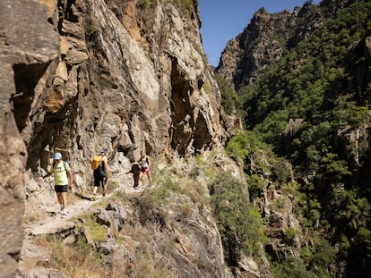 Una vertiginosa cornisa, puentes colgantes y pasarelas elevadas recorren los pies del macizo del Canigó, entre Occitania y la Cataluña Norte