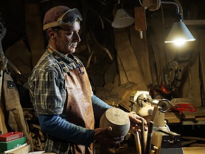 Eloi Renau, un artesano barcelonés que trabaja la madera, se trasladó en plena pandemia a la aldea para repoblarla tras más de 40 años deshabitada