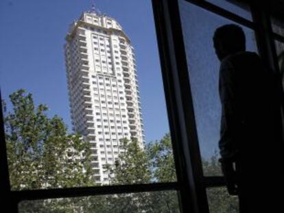 Con una torre semivacía de lujosos apartamentos en venta; una carcasa de rascacielos abandonada y dos edificios de oficinas ‘okupados’, la plaza de España languidece