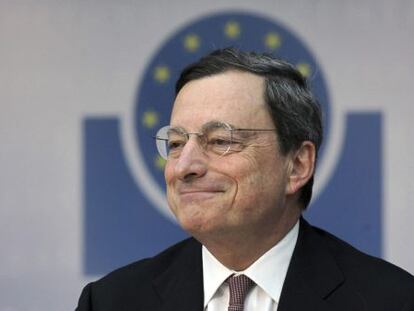 El presidente de BCE, Mario Draghi, alivia la tormenta financiera con una simple insinuación de que actuará a fondo para garantizar el futuro de la moneda única