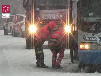 Los bomberos rescatan a dos autobuses de línea atrapados en Castellón La nevada y el fuerte viento afecta también a Valencia El temporal de nieve deja a 500 alumnos sin clase en nueve pueblos