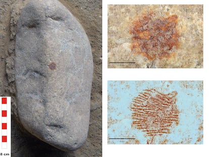 Los autores ven en una piedra un rostro humano con un punto rojo añadido como nariz hace 43.000 años por un neandertal, pero otros expertos son escépticos