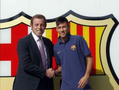 Neymar se presenta ante más de 56.000 personas en el Camp Nou y firma por cinco temporadas