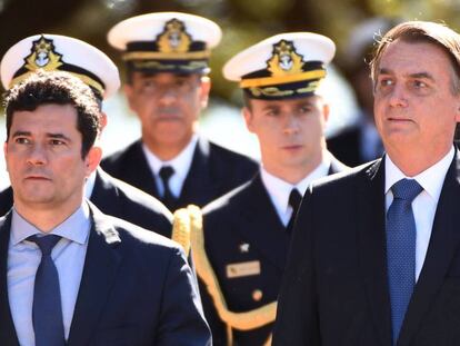 El presidente brasileño aparece junto a su ministro de Justicia en un acto oficial. Hasta la tarde de este martes no se había pronunciado sobre las acusaciones de falta de imparcialidad del exjuez del 'caso Lava Jato'