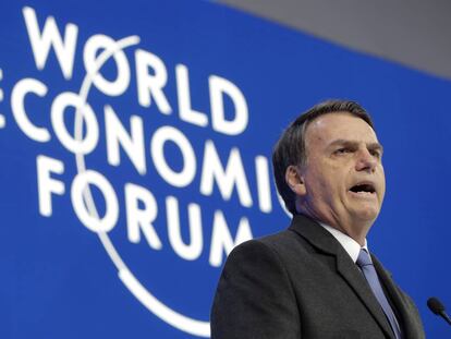 El presidente ultraderechista acude a la cumbre anual de la élite económica y política con sus ministros de Economía, Justicia y Exteriores