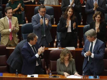 El líder de Ciudadanos ha reprochado a la presidenta de la Comunidad que presentara los prespuestos "en solitario"