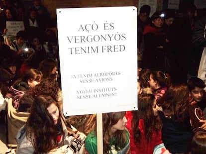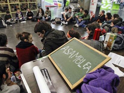La concentración convocada en el instituto Lluís Vives se extiende a toda la ciudad Dos centenares de alumnos se reúnen en asamblea en la Facultad de Geografía e Historia
