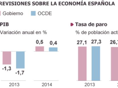 El nuevo pronóstico anticipa un saldo público peor del fijado por el Gobierno para 2013 y 2014 "Impulsar el crecimiento debería ser la prioridad número uno", señala la OCDE a Rajoy El PIB bajará un 1,7% este año, según el organismo, frente al 1,3% que augura La Moncloa