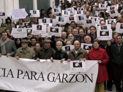 Dos centenares de vecinos del pueblo natal de Baltasar Garzón se concentran en apoyo del juez