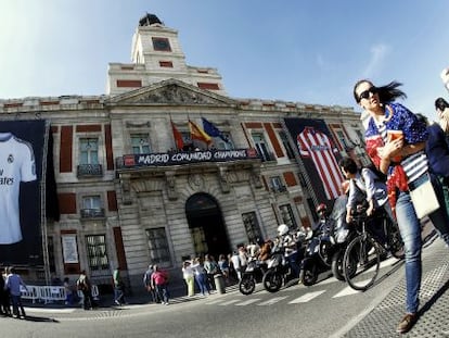 La intención de González de instalar una pantalla en Sol para seguir el partido entre Atlético y Real Madrid no encuentra el apoyo de Cifuentes, que apela a razones de seguridad y a la Junta Electoral