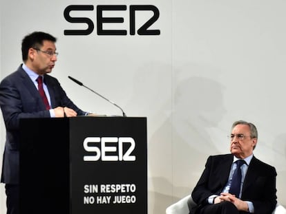 Florentino Pérez y Josep María Bartomeu presentaron junto a Andrea Agnelli, mandatario de la Juventus, "Sin respeto no hay juego", un proyecto conjunto de UNESCO y PRISA Radio