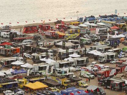 Los pilotos ultiman los detalles antes de iniciar en Lima un Dakar que, con la baja de Coma y las modificaciones de reglamento en los coches, aspira a un relevo generacional