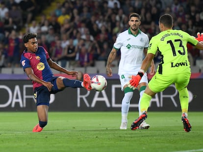 Los azulgrana abaten al confundido equipo de Bordalás con la cabeza de Cubarsí y las piernas de Raphinha