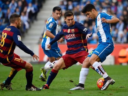 Los de Luis Enrique se dejan dos puntos en su primer partido de 2016. Repasa las mejores imágenes del duelo en Cornellà