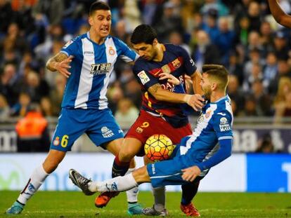 El árbitro afirma que el delantero uruguayo fue el instigador de la trifulca que se produjo en el túnel de vestuario tras acabar el Barça-Espanyol de Copa El uruguayo se expone a tres partidos de sanción