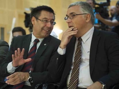 Los presidentes Josep Maria Bartomeu y Joan Collet participan en la Campaña Guanyarem, que defiende el derecho a decidir de Cataluña