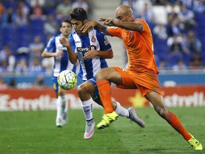 El mediapunta del Espanyol se subraya con su pie de seda en un duelo marcado por la intensidad y por el primer tanto de Víctor Álvarez en Primera