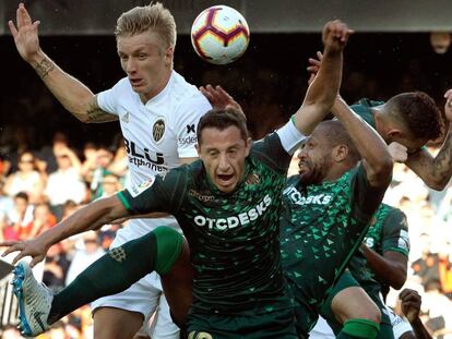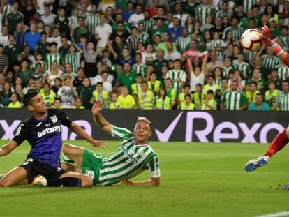 Un gol de cabeza del verdiblanco tumba a un Sevilla que jugó más de 30 minutos en inferioridad por la roja a Roque Mesa