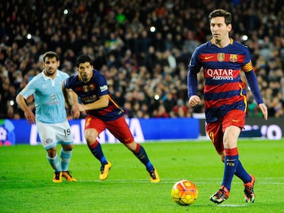 El 10 marca la diferencia en un partido muy bien jugado por el Celta y el Barça y presidido por un penalti indirecto que transformó Luis Suárez