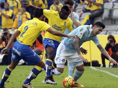El conjunto canario se impone al Celta, que acabó el partido con uno menos