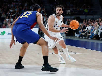 El base argentino lidera el triunfo del Madrid ante un Barça que tuvo un triple para ganar en el último segundo (73-71)
