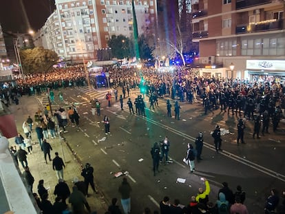 La Policía resuelve hora y media de cánticos e insultos contra la propiedad del club acorralando a los más fanáticos en la previa de un encuentro con mucha carga anímica, que remataron la expulsión de Vinicius y los goles de Modric y Bellingham