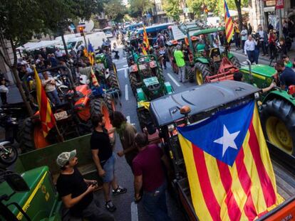 Decenas de vehículos agrícolas llegan a la capital catalana convocados por varios sindicatos