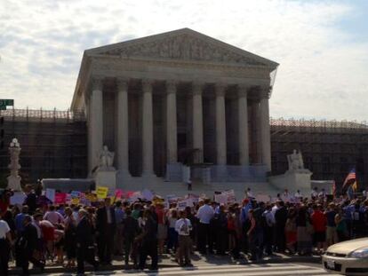 Cientos de manifestantes escuchan el dictamen a las puertas del Tribunal Supremo en Washington