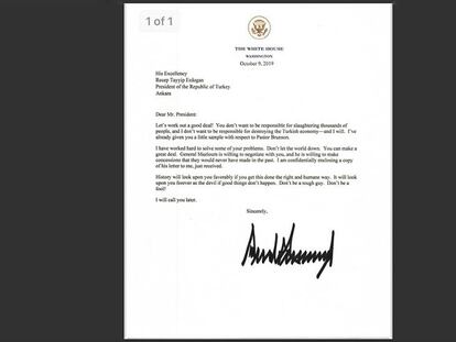 Trump recomienda por carta a Erdogan que no vaya de “tipo duro” o pasará a la historia como el “demonio”