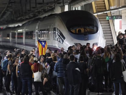 Los estudiantes han ocupado las vías en la estación de Girona a primera hora de la mañana